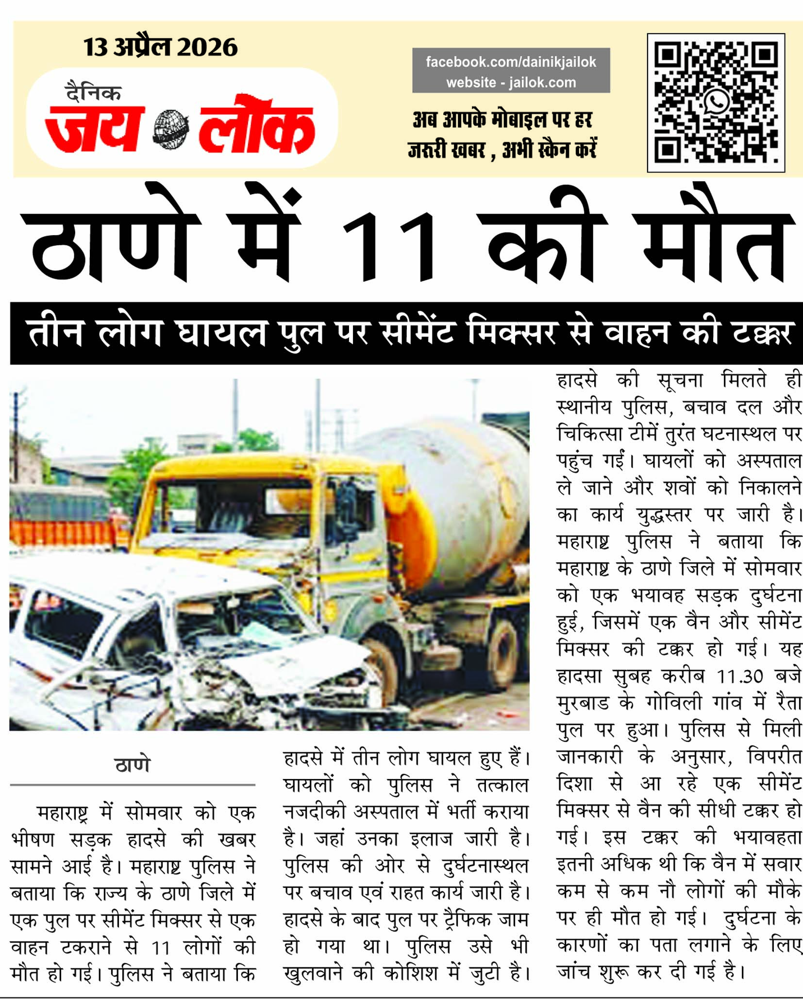 ठाणे में 11 की मौत, तीन लोग घायल पुल पर सीमेंट मिक्सर से वाहन की टक्कर