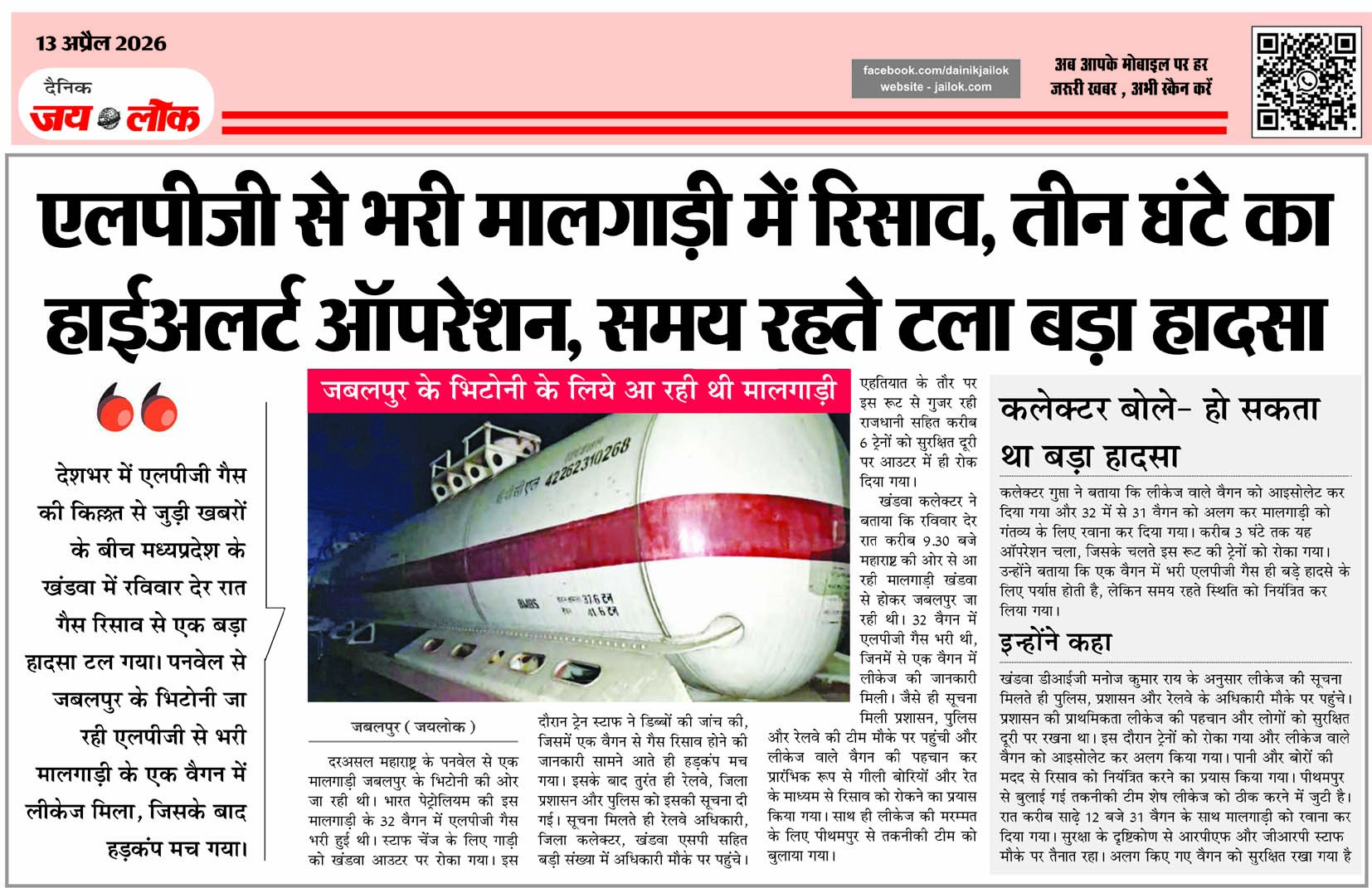 एलपीजी से भरी मालगाड़ी में रिसाव, तीन घंटे का हाईअलर्ट ऑपरेशन, समय रहते टला बड़ा हादसा