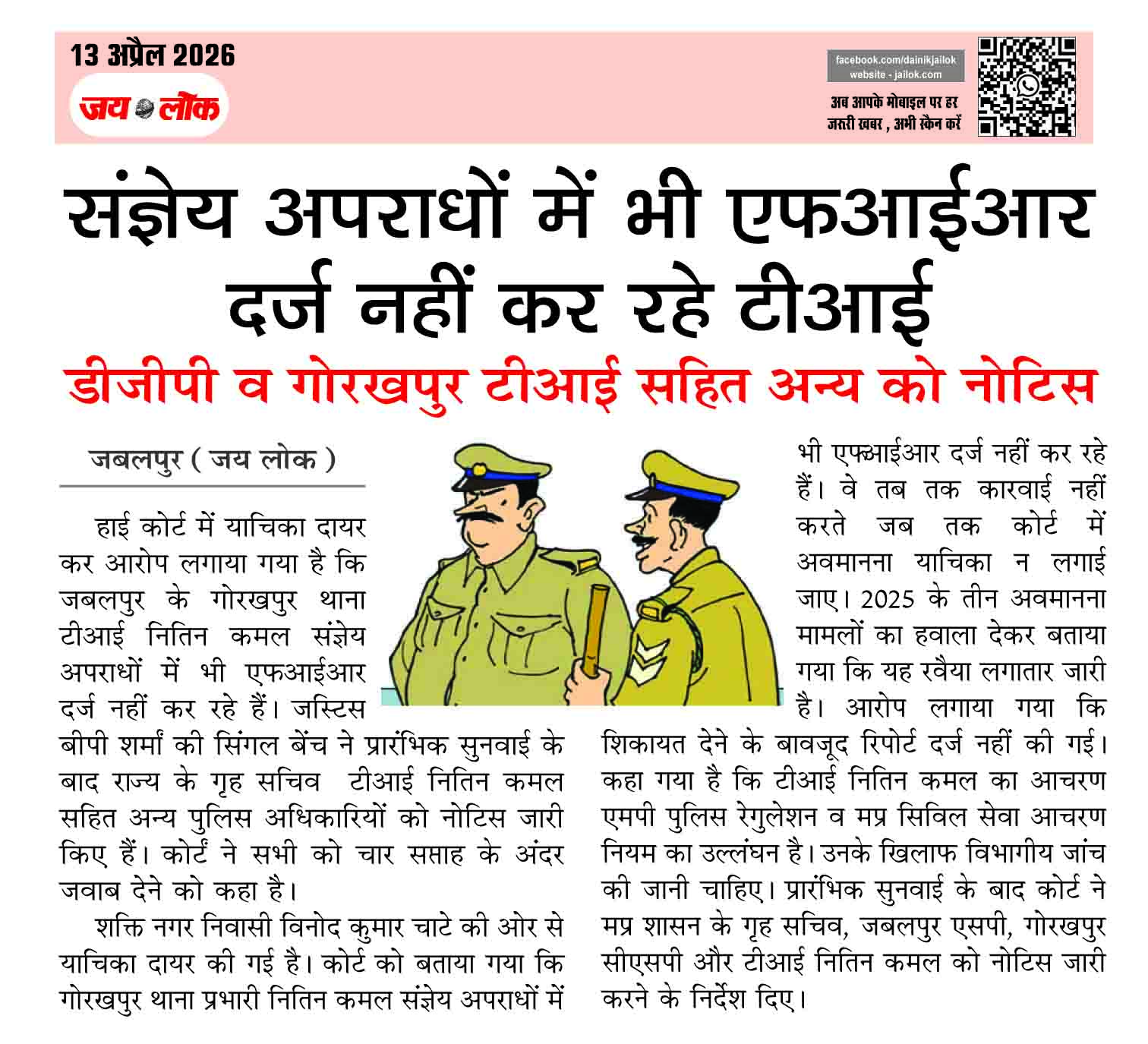 संज्ञेय अपराधों में भी एफआईआर दर्ज नहीं कर रहे टीआई