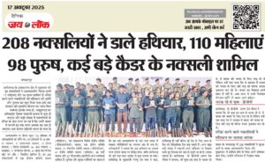 208 नक्सलियों ने डाले हथियार, 110 महिलाएं 98 पुरुष, कई बड़े कैडर के नक्सली शामिल