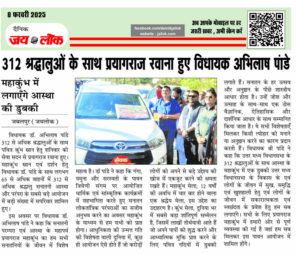 312 श्रद्धालुओं के साथ प्रयागराज रवाना हुए विधायक अभिलाष पंाडे, महाकुंभ में लगाएँगे आस्था की डुबकी