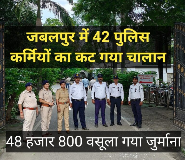 पुलिस अधीक्षक के निर्देश पर हुई कार्यवाही जबलपुर जय लोक। लोगों ने अक्सर सुना होगा कि पुलिस इतने लोगों के हेलमेट के चालान काट दिए। ऐसा बहुत कम ही सुनने में आता है कि पुलिस ने अपनी ही फोर्स के पुलिस कर्मियों को नियमों का पालन न करने के कारण पकड़ा हो और उनके भी … Continue reading 42 पुलिसकर्मियों का चालान कटे,वसूला गया 48 हजार 800 रुपये का जुर्माना