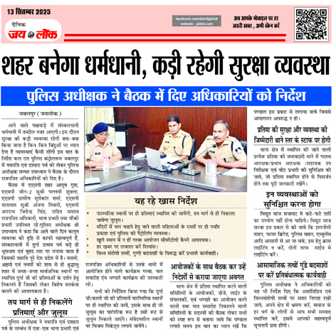 शहर बनेगा धर्मधानी, कड़ी रहेगी सुरक्षा व्यवस्था, पुलिस अधीक्षक ने बैठक में दिए अधिकारियों को निर्देश