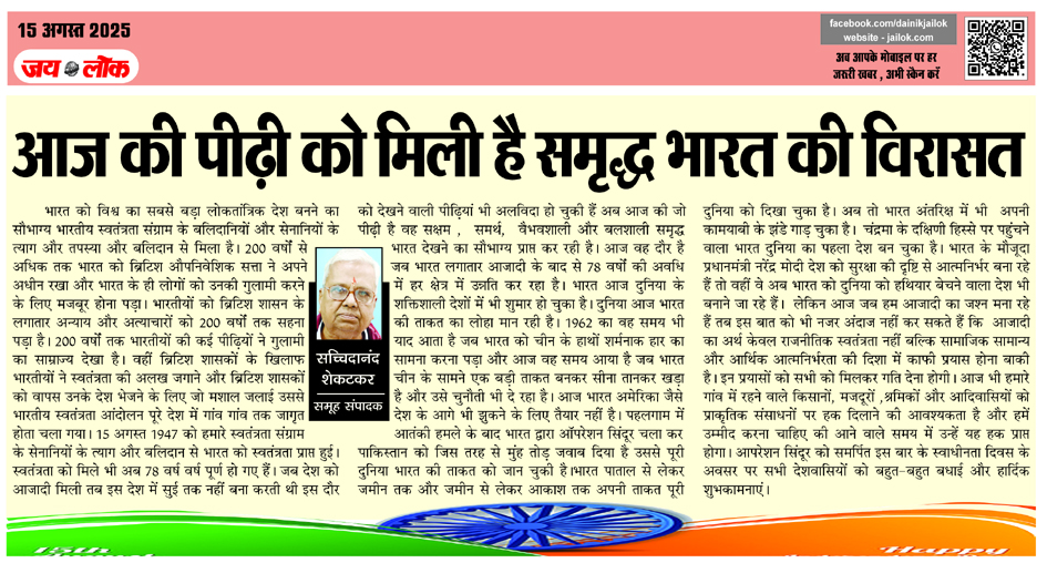 आज की पीढ़ी को मिली है समृद्ध भारत की विरासत