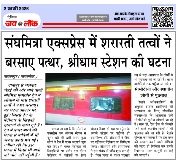 संघमित्रा एक्सप्रेस में शरारती तत्वों ने बरसाए पत्थर, श्रीधाम स्टेशन की घटना