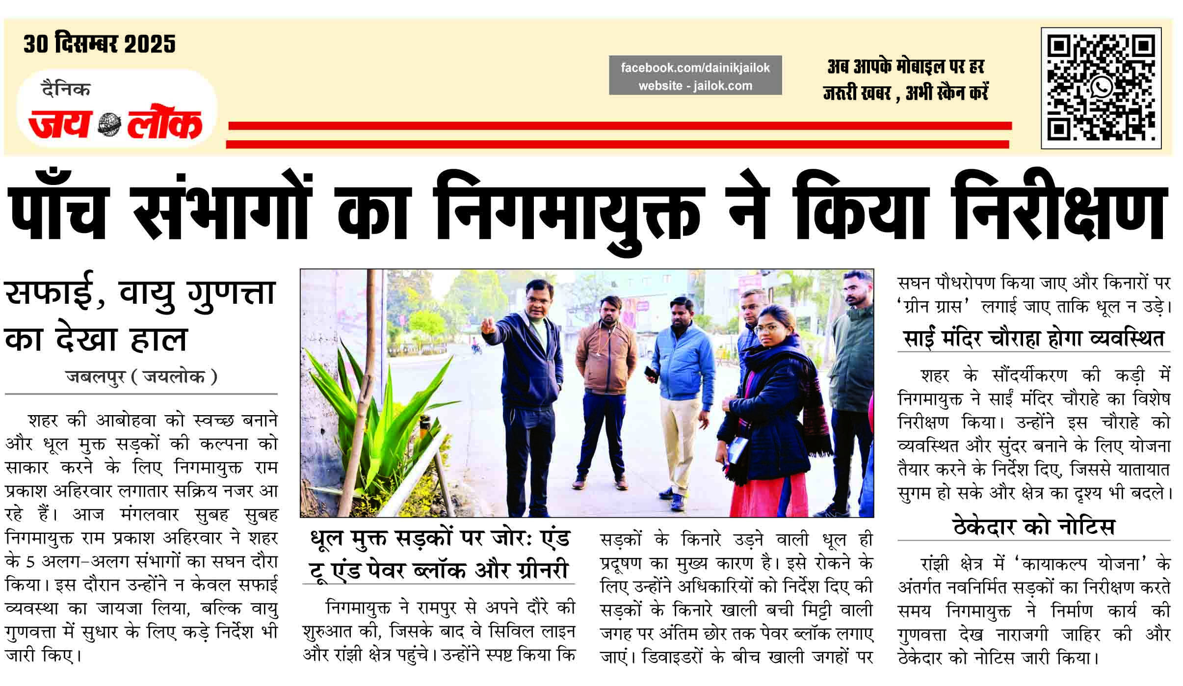 पाँच संभागों का निगमायुक्त ने किया निरीक्षण, सफाई, वायु गुणत्ता का देखा हाल