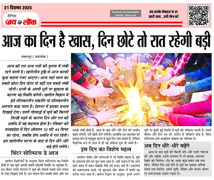 आज का दिन है खास, दिन छोटे तो रात रहेगी बड़ी