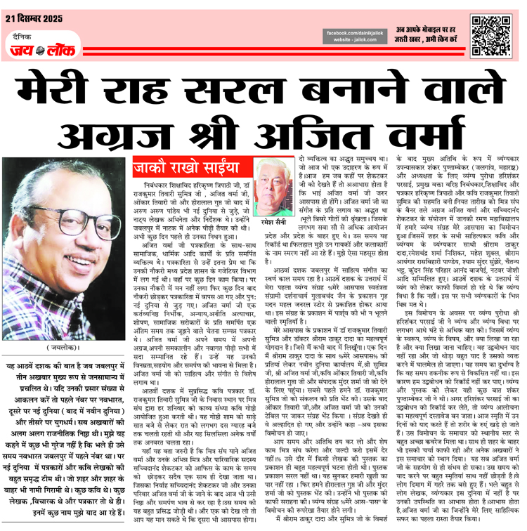 मेरी राह सरल बनाने वाले अग्रज श्री अजित वर्मा