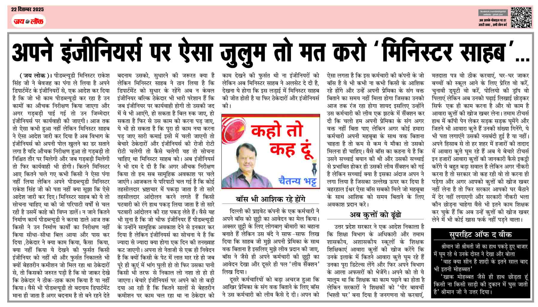 अपने इंजीनियर्स पर ऐसा जुलुम तो मत करो ‘मिनिस्टर साहब’…