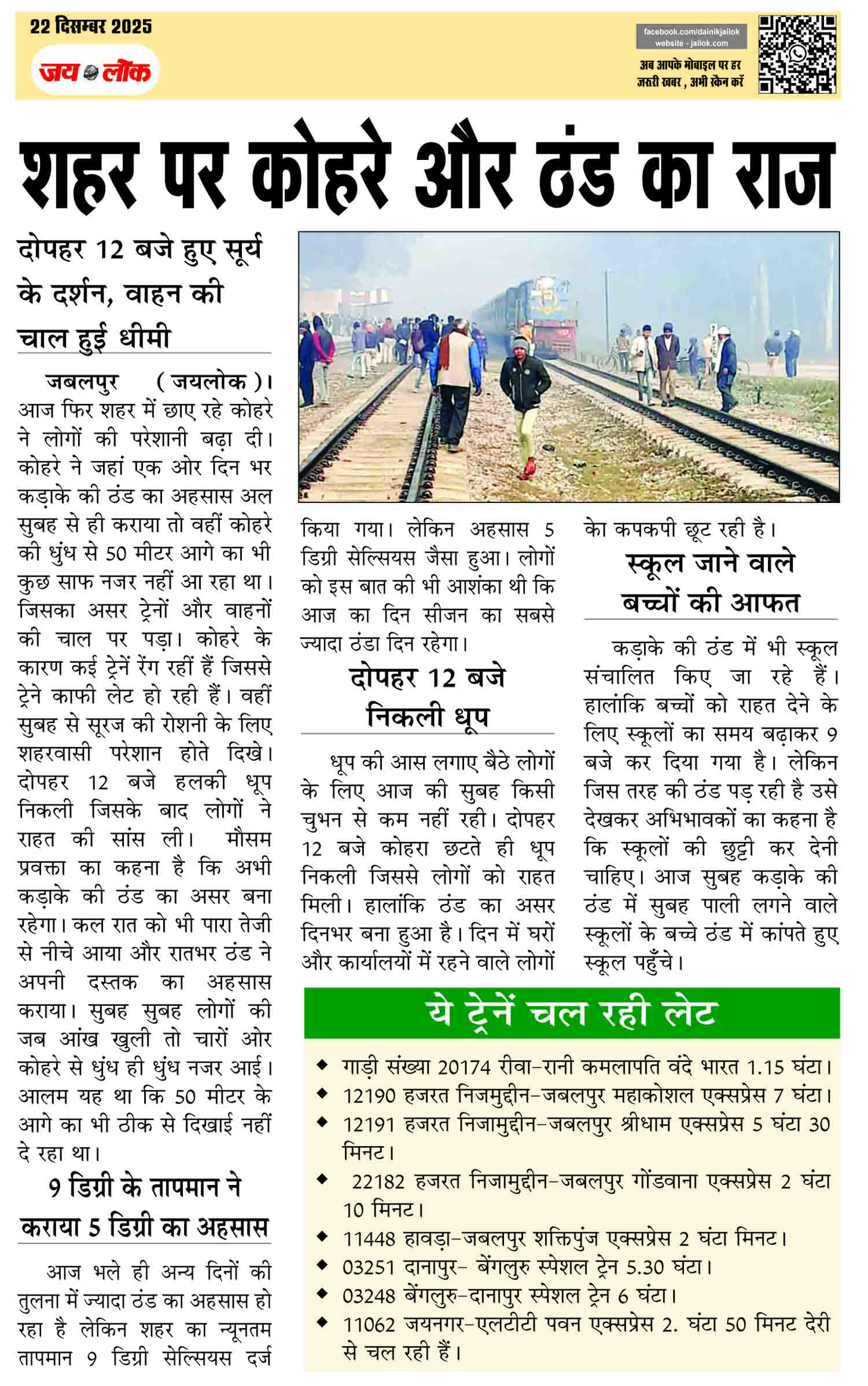 शहर पर कोहरे और ठंड का राज, दोपहर 12 बजे हुए सूर्य के दर्शन, वाहन की चाल हुई धीमी