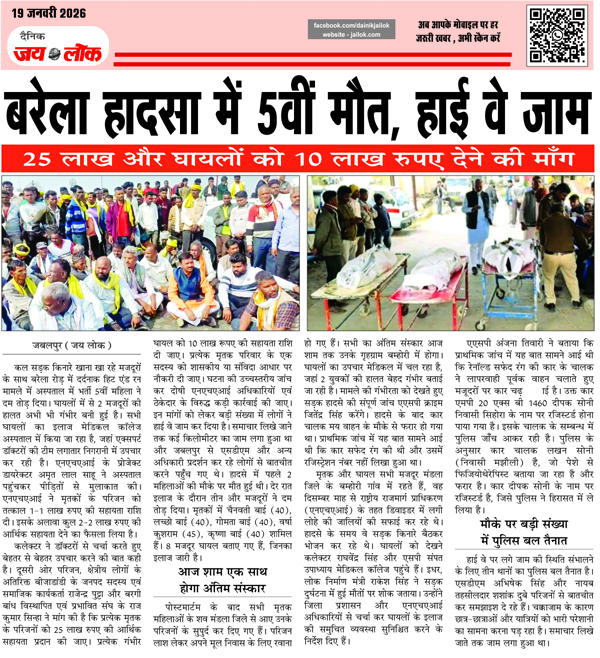 बरेला हादसा में 5वीं मौत, हाई वे जाम, 25 लाख और घायलों को 10 लाख रुपए देने की माँग