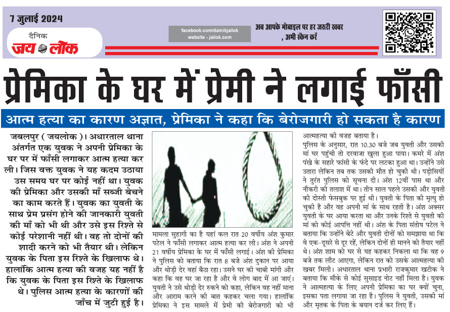 प्रेमिका के घर में प्रेमी ने लगाई फाँसी