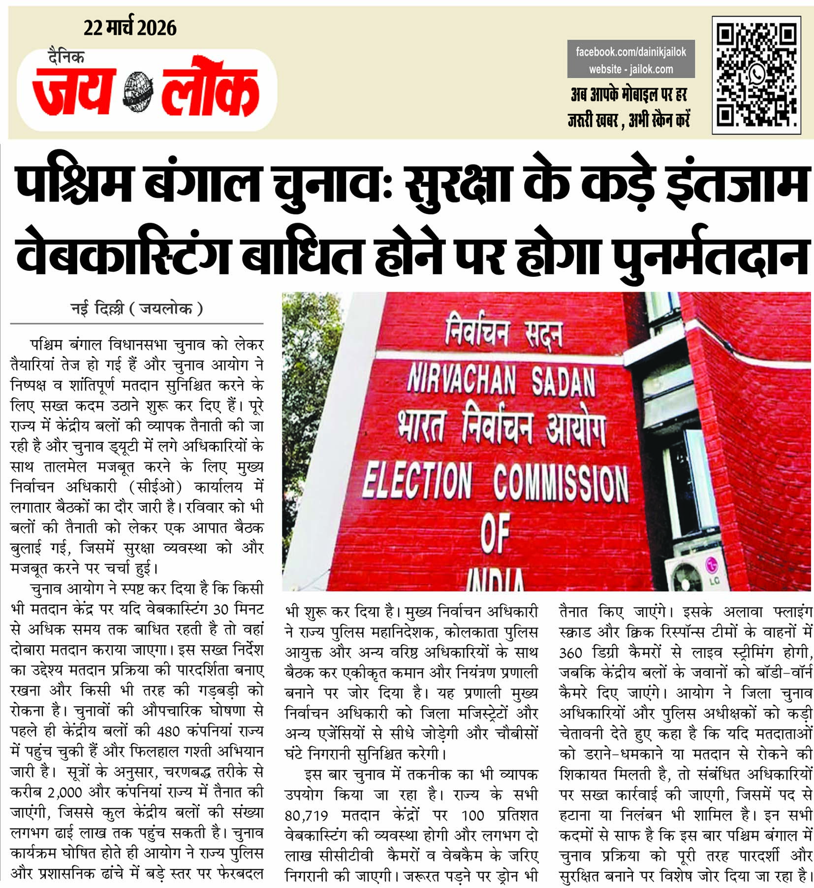 पश्चिम बंगाल चुनाव: सुरक्षा के कड़े इंतजाम वेबकास्टिंग बाधित होने पर होगा पुनर्मतदान