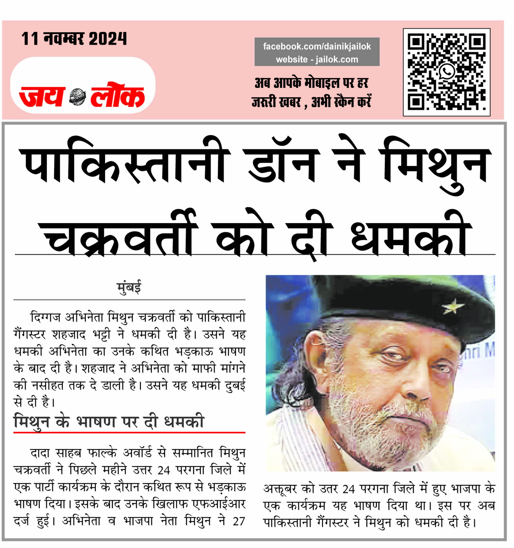 पाकिस्तानी डॉन ने मिथुन चक्रवर्ती को दी धमकी