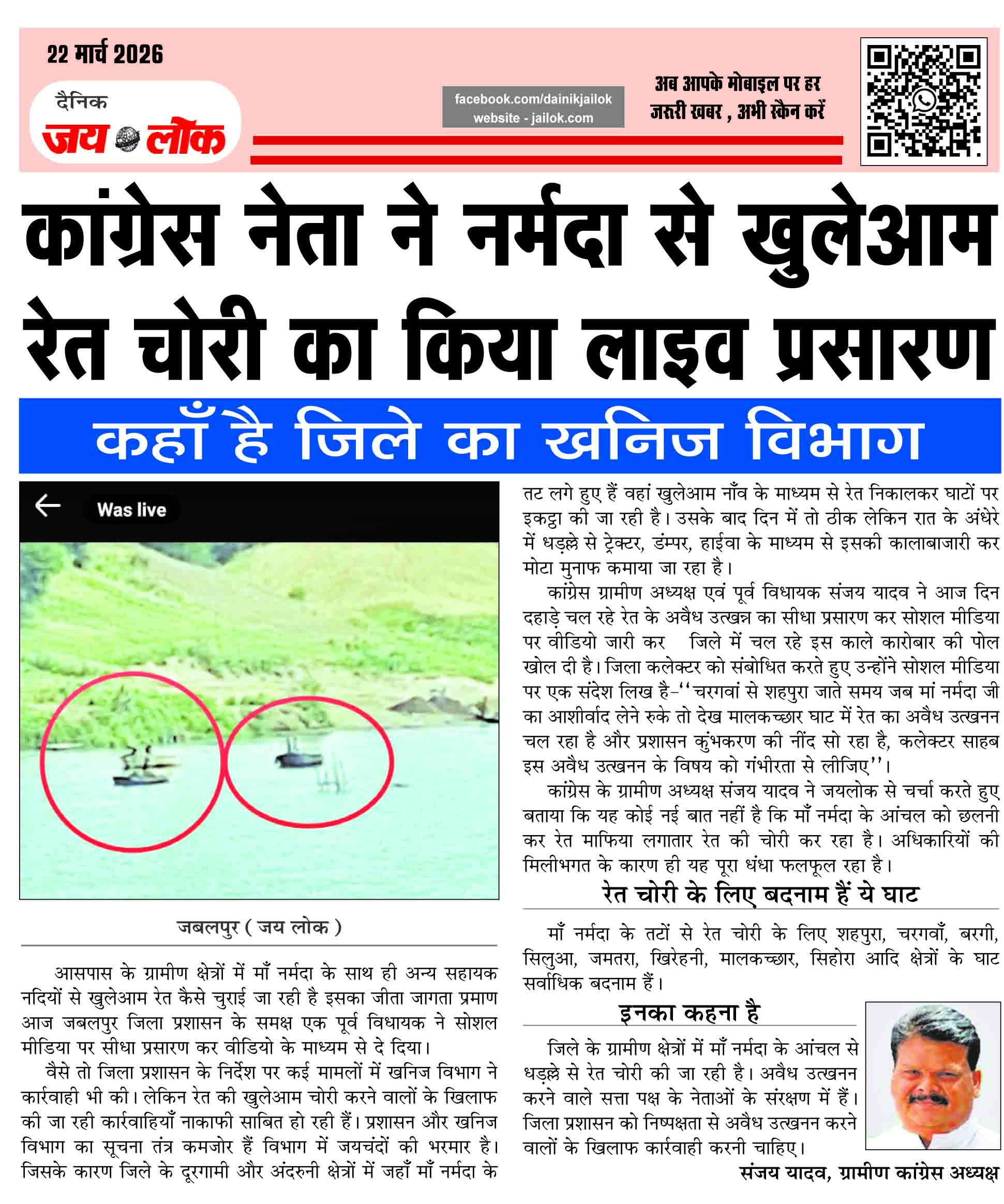 कांग्रेस नेता ने नर्मदा से खुलेआम रेत चोरी का किया लाइव प्रसारण, कहाँ है जिले का खनिज विभाग