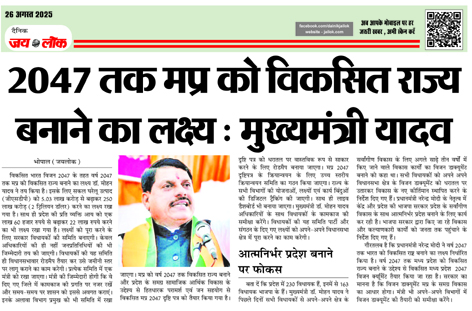2047 तक मप्र को विकसित राज्य बनाने का लक्ष्य : मुख्यमंत्री यादव