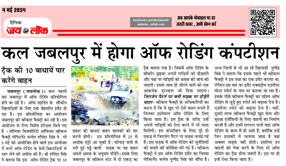 कल जबलपुर में होगा ऑफ रोडिंग कंपटीशन, ट्रैक की 10 बाधायें पार करेंगे वाहन